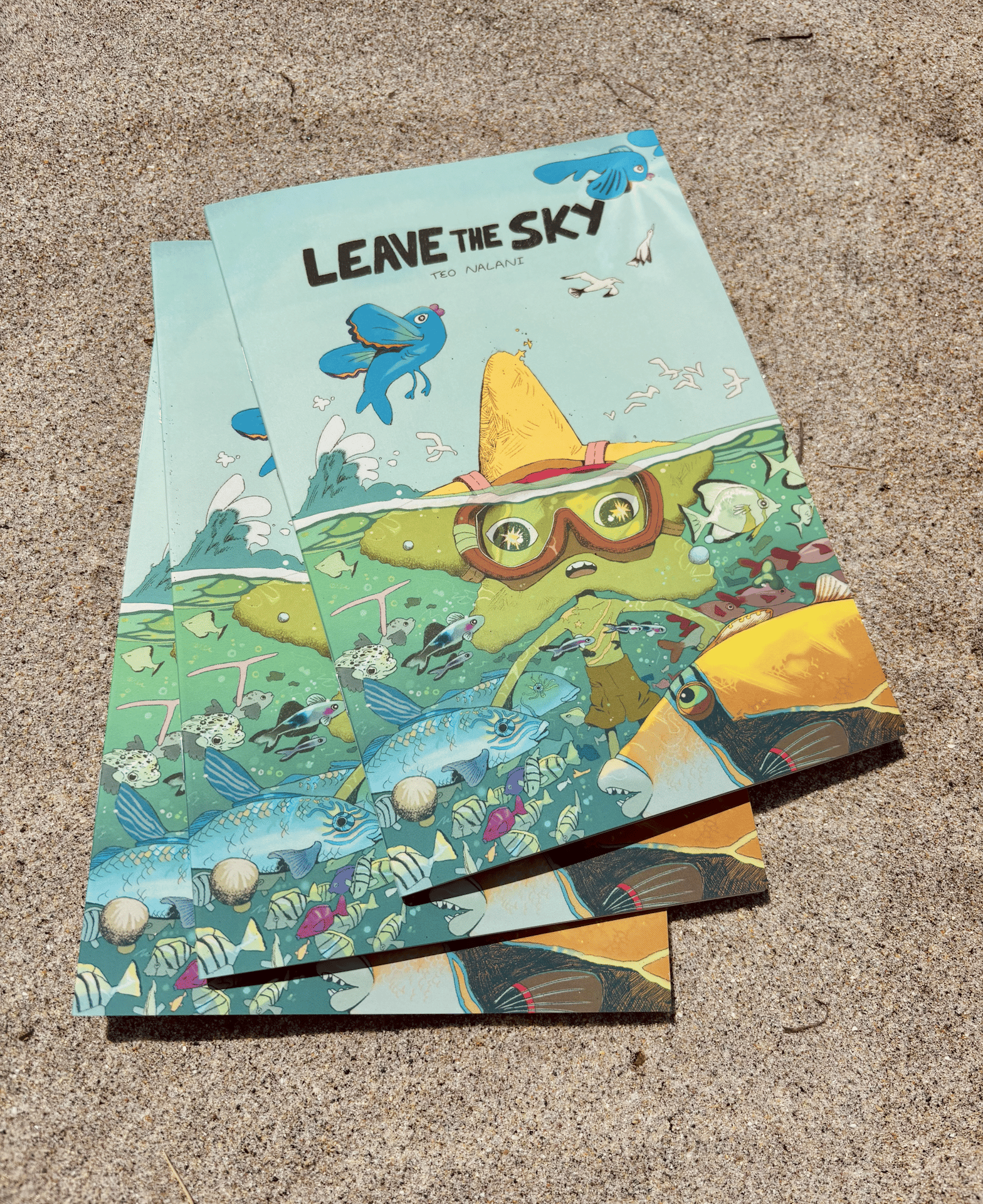 A 28 page art zine about a sky star who leaves home to become a sea star, meeting new fish (and mango) friends and discovering his love for the ocean. Written and drawn in the style of a journal, I included colored pencil sketches from my sketchbook, recordings of fish I saw snorkeling :)